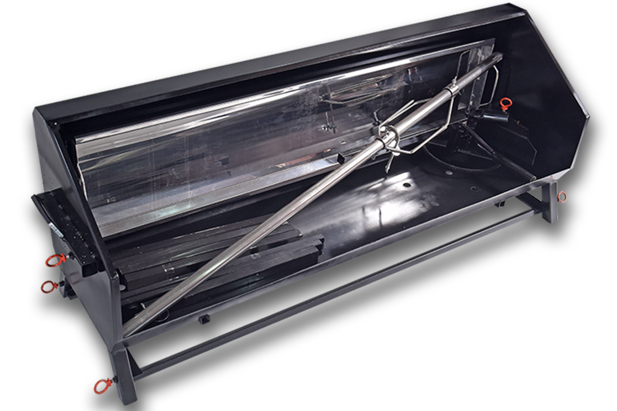 Pečenjara ima ojačane noge i mogućnost podešavanja udaljenosti ražnja i motora od ložišta.